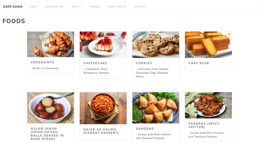"kafe khan" is a business I created for a web design project. I used HTML/CSS and Bootstrap to construct a fully functioning cafe website.